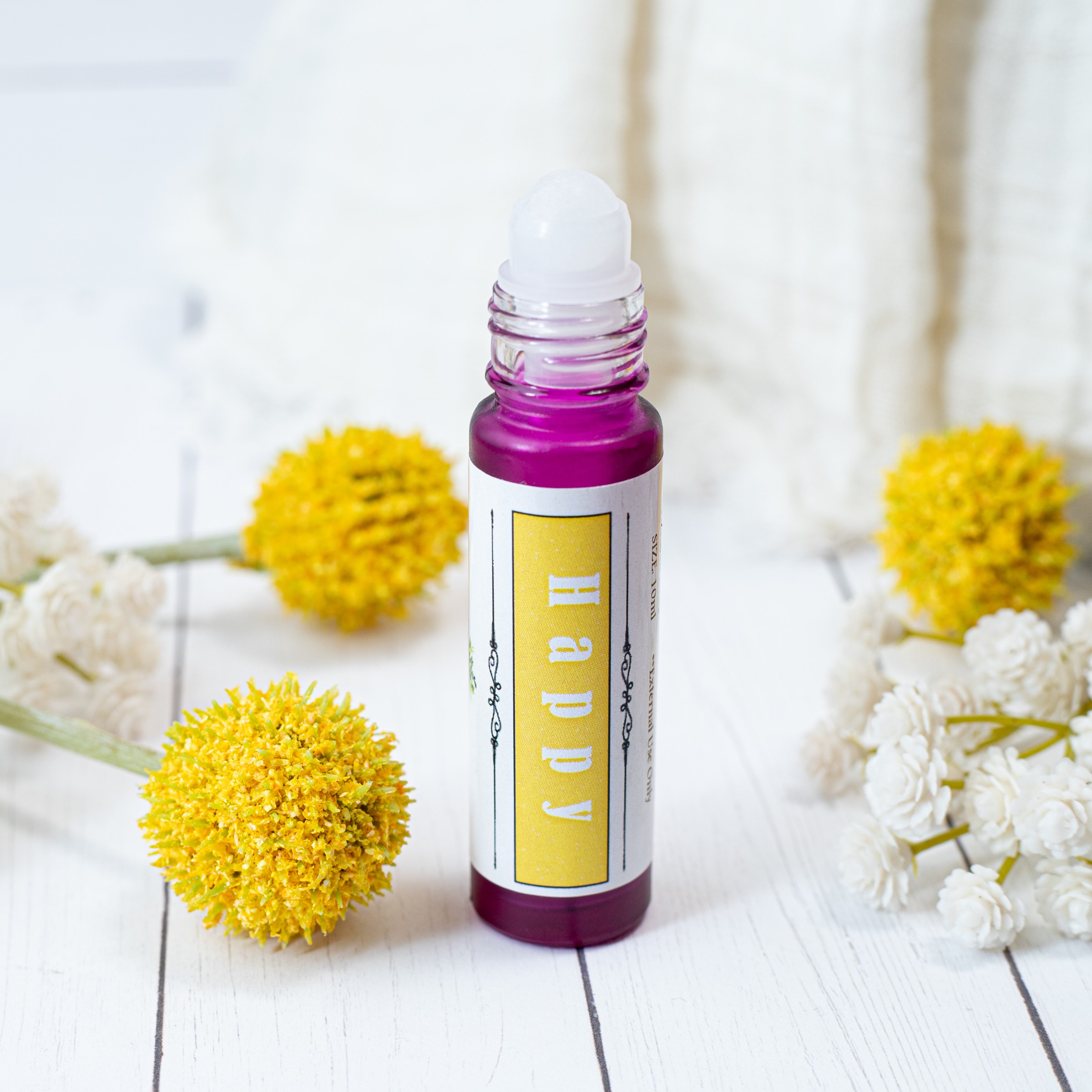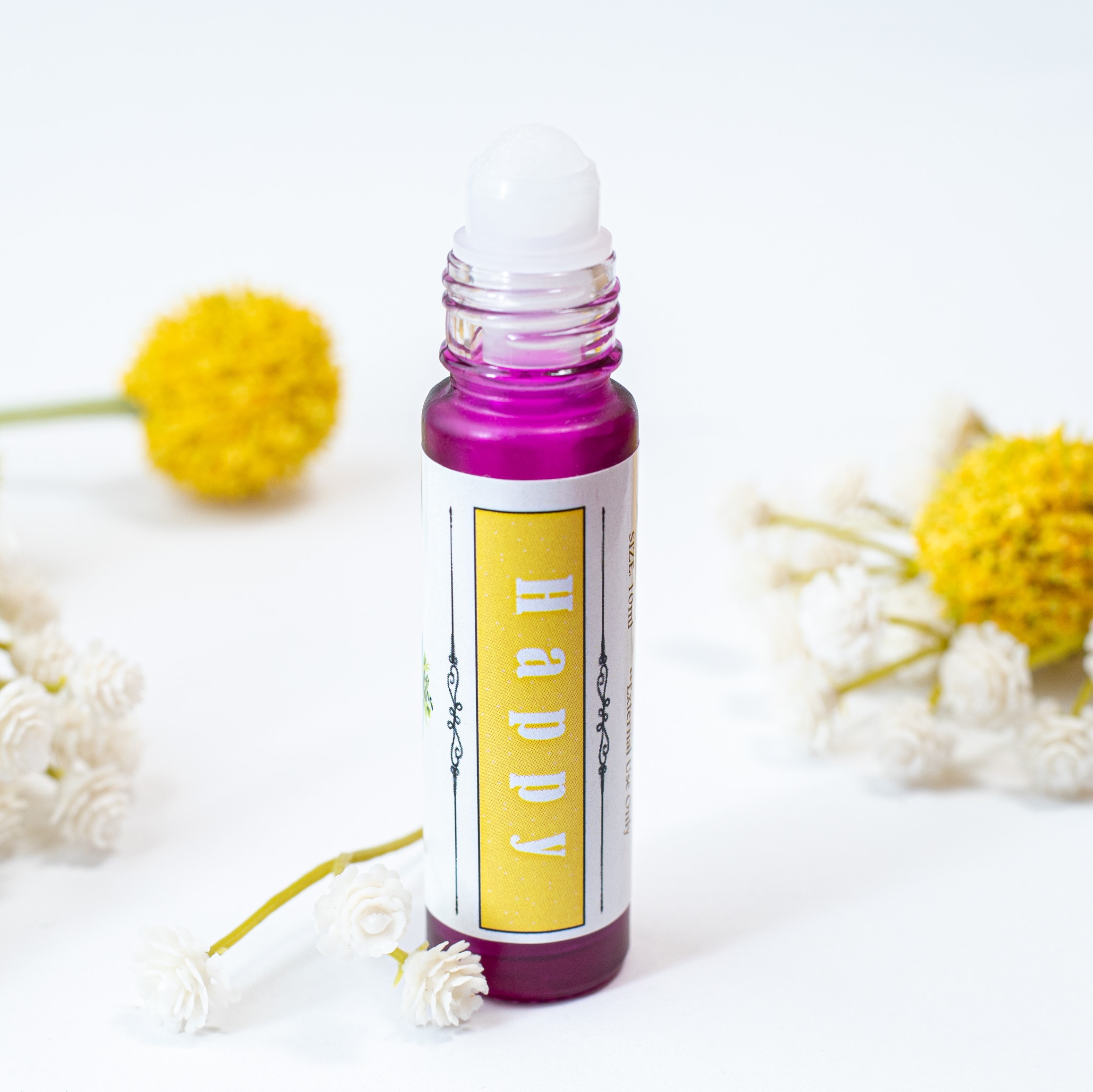 HAPPY essential oil synergy is purposefully created to bring up delightful sunshine happiness to you in the bottle. The choice essential oils blend helps to uplift your mood, promote joyfulness. The aroma is bright, sweet, and cheerful.
