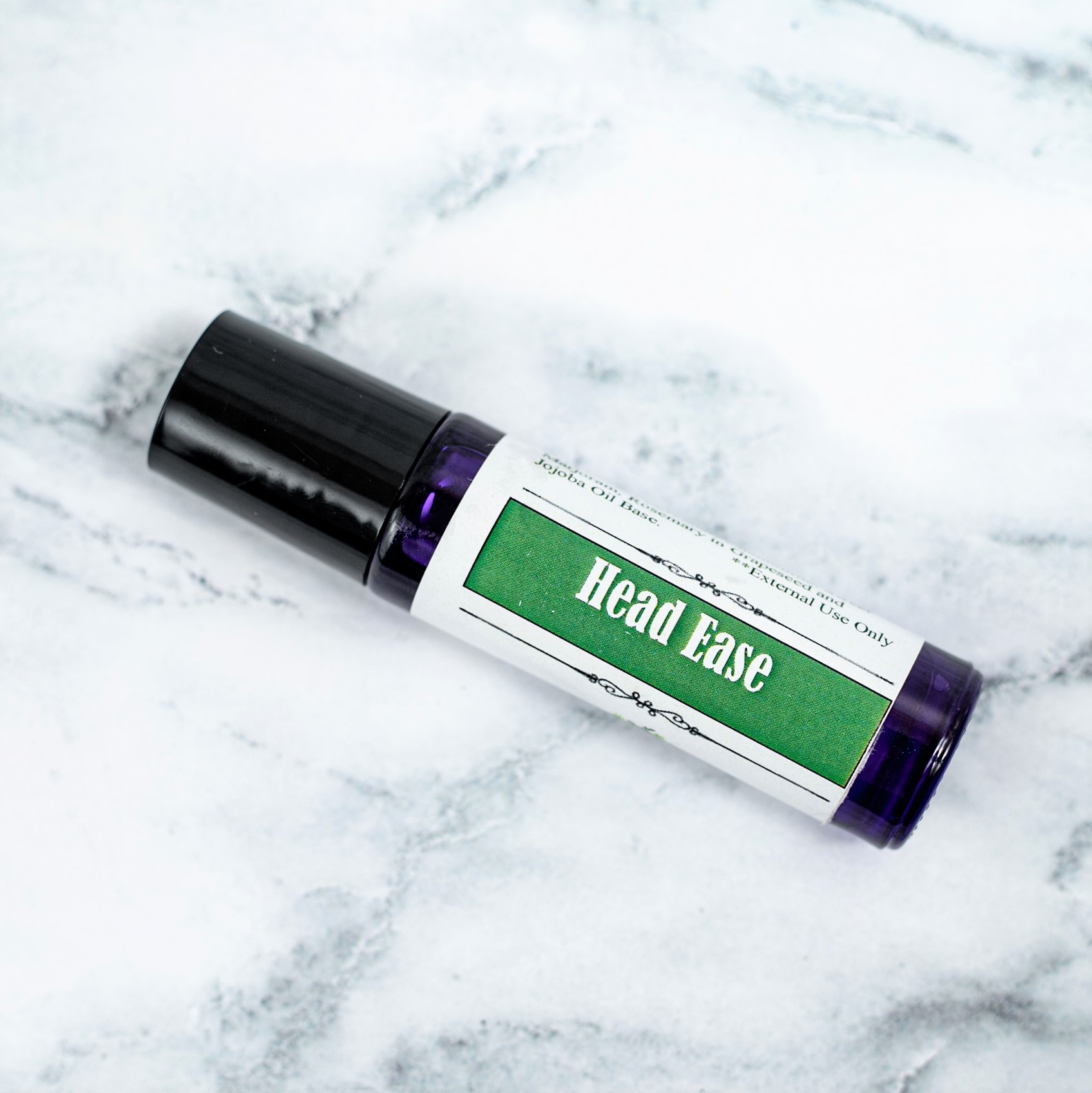 Head Ease roller, an essential oil blend of headache and migraine relief in a bottle. This special formulation helps to ease the pain, loosen up tension and stress with soothing essential oil aroma. Let this relieving and relaxing Lavender, Chamomile, Peppermint, Rosemary, and Sweet Marjoram Essential Oil blend to ease, reduce, and alleviate your pain.
